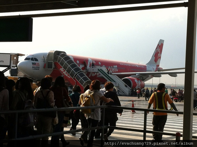 因為沒有空橋,幾乎都是要走平面道路,LCCT因為每天飛的班機很多,所以...人來人往的,我真是超怕迷路的