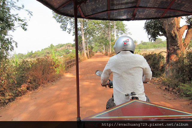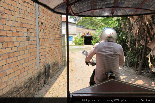我門走了很長一段路,旁邊有這個一車一車的...這就是運送行李的車子